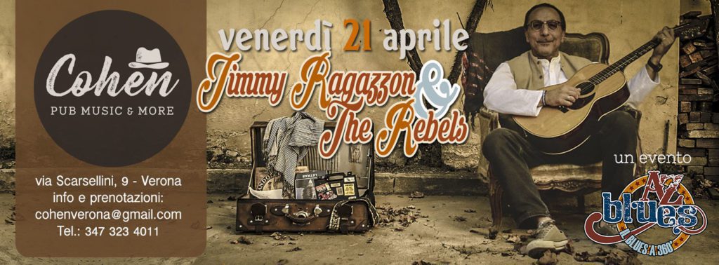 La collaborazione con A-Z Blues inzierà con l’appuntamento di venerdì 21 Aprile quando Jimmy Ragazzon accompagnato dai The Rebels presenterà “SongBag“, primo album solista dopo oltre trent’anni di carriera pressoché tutta dedicata ai Mandolin’ Brothers, band da lui stesso fondata. Questo “esordio discografico” solista, era per Ragazzon un sogno nel cassetto trattenuto per anni, dove ad aiutarlo sono accorsi diversi illustri amici, facendone risultare un disco tanto americano che si stenta a credere possa essere creato da un italiano. Se n’è accorta anche la critica specializzata che, in pochi mesi, ha decretato “SongBag” come disco dell’anno, raccogliendo un pieno di consensi, partendo da Classic Rock UK, Roots Highway, Disco Club, Mescalina, il Diapason Blog fino ad Amadeus, Il Popolo del Blues, Magazzini Inesistenti, Rivista Il Blues e Buscadero. Per la prima volta in Verona, sarà per il nuovo pubblico sicuramente una grande sorpresa!
